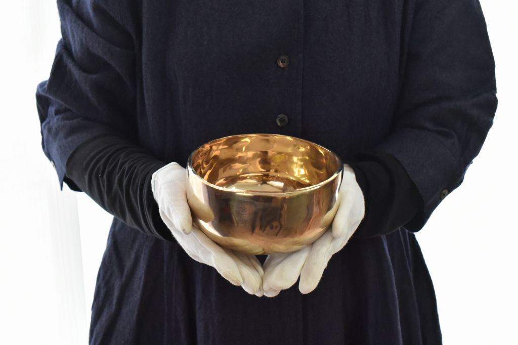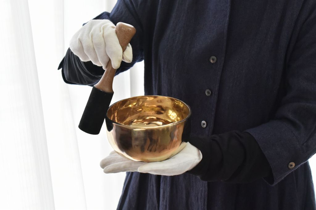 ハンドメイドのシンギングボウルは、強い波動と余韻が特徴です。