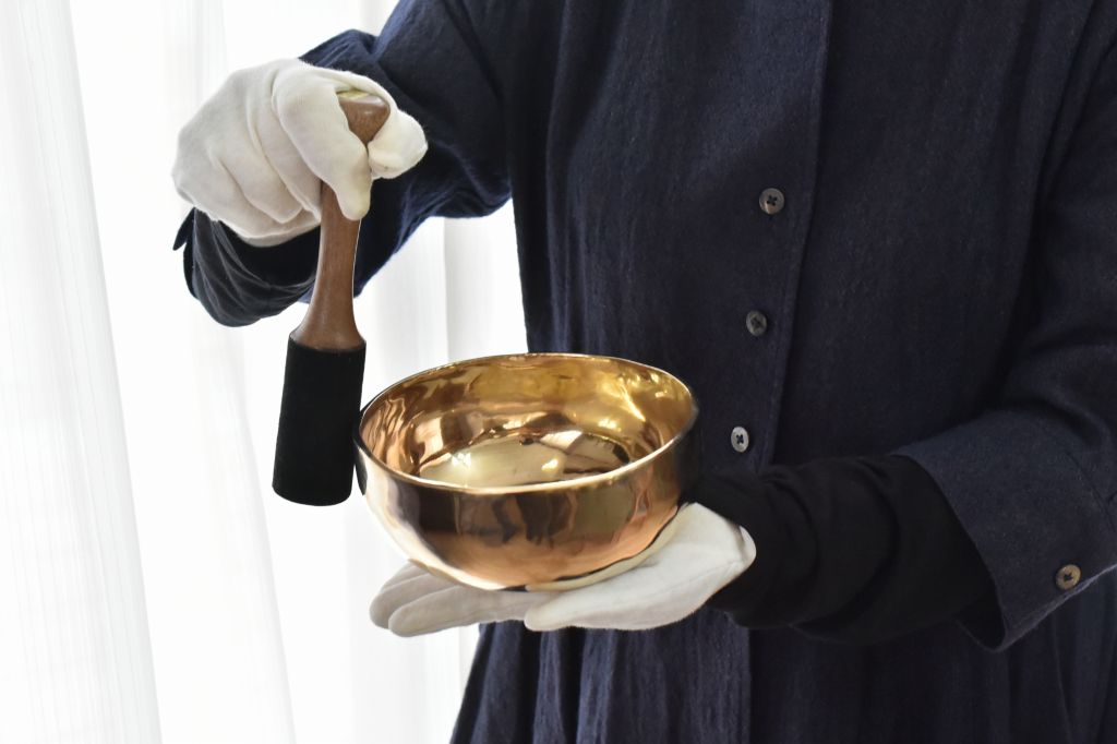 ハンドメイドのシンギングボウルは、強い波動と余韻が特徴です。