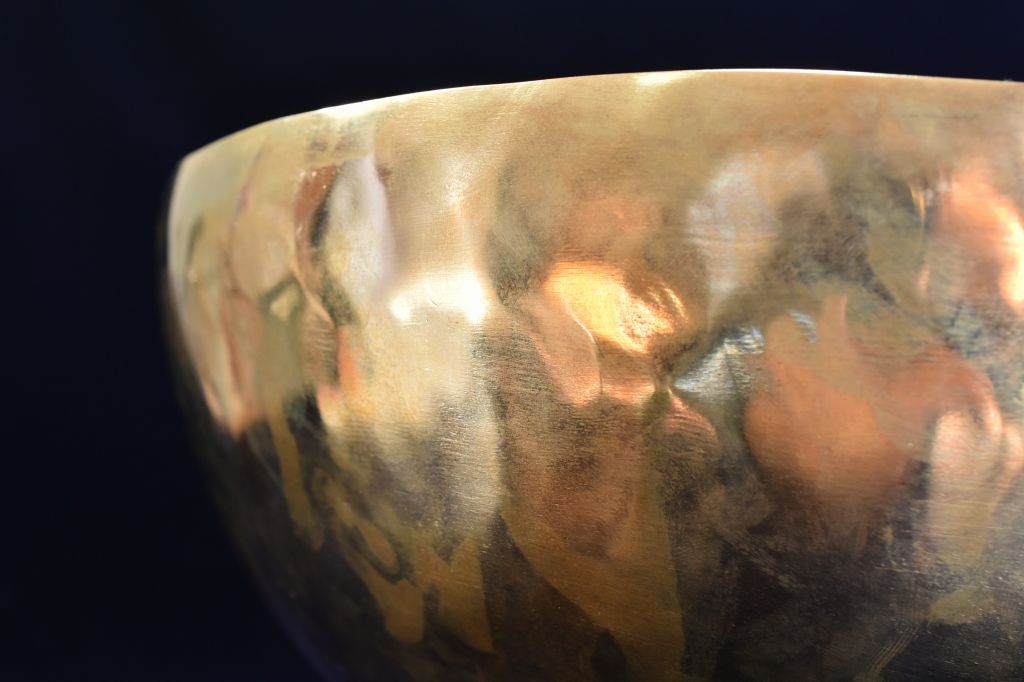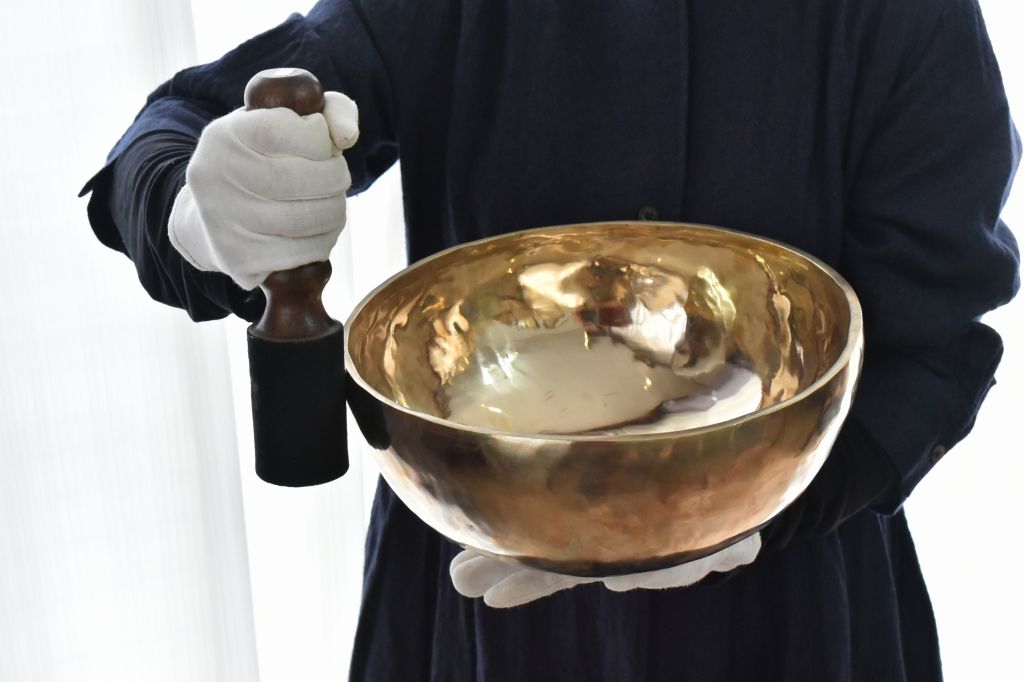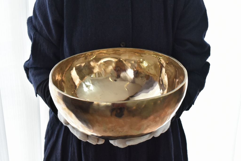 ハンドメイドのシンギングボウルは、強い波動と余韻が特徴です。
