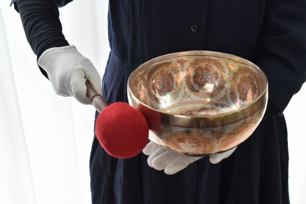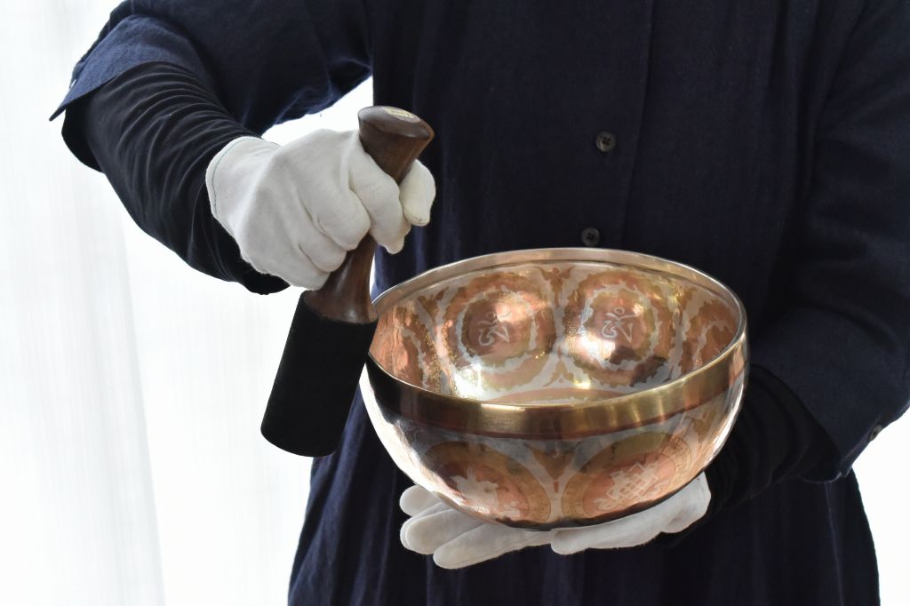 ハンドメイドのシンギングボウルは、強い波動と余韻が特徴です。