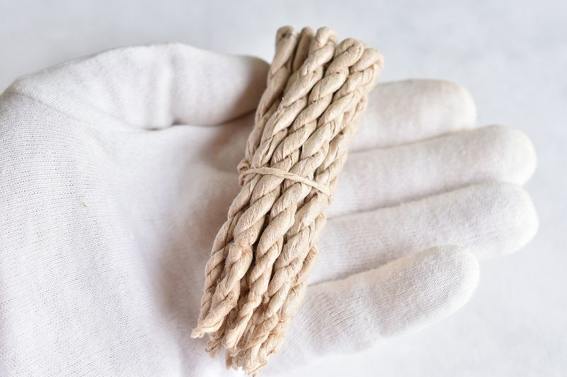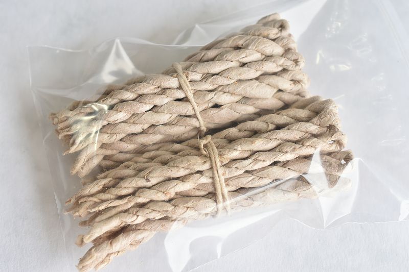 ヒマラヤ杉の若葉を乾燥させ粉末にし、柔らかな手漉きの紙(ライスペーパー)に包み捻って製作します。
