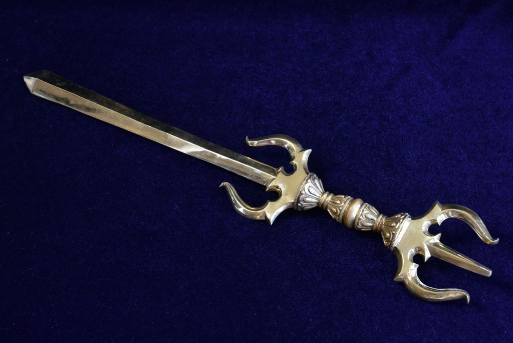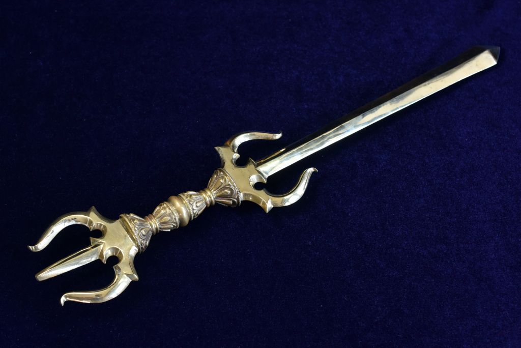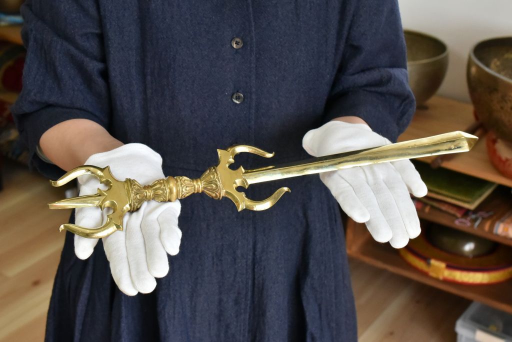比較的大きな手作り三鈷杵ヴァジュラの一方から、剣が延びたものです。