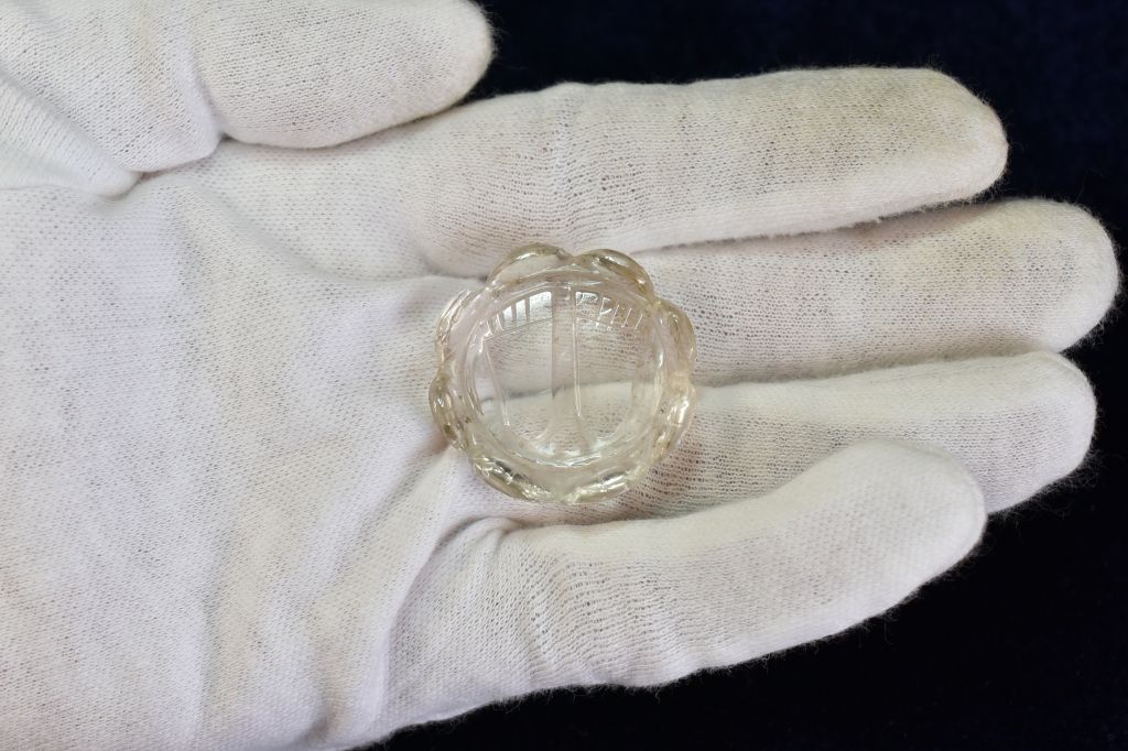 ガネーシュヒマール標高6,000m付近で採取された、天然のヒマラヤ水晶原石から削り出した仏足石です。