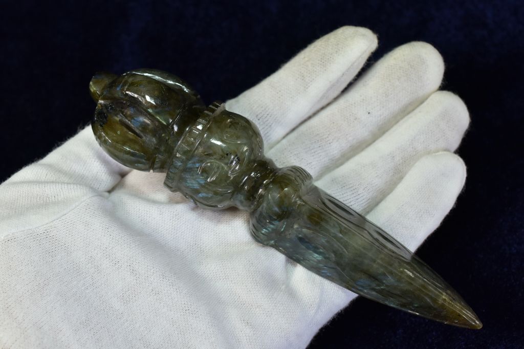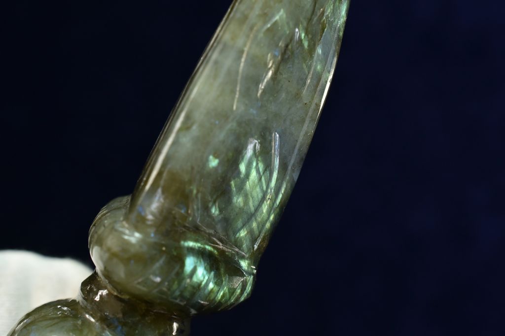上質なマダガスカル産天然ラブラドライトから、丸ごと削り出しているプルパです。