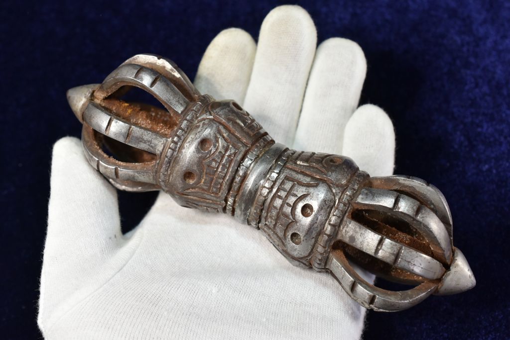 カトマンズのチベット仏教寺院で70〜80年ほど前から使われていた、鉄製のドルジェ(ヴァジュラ)です。