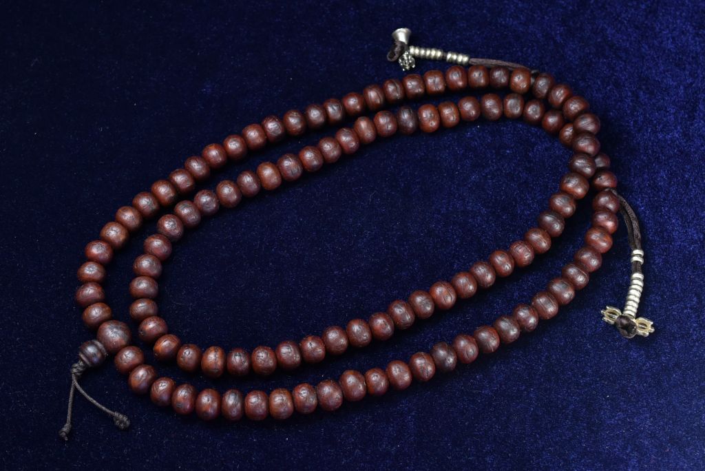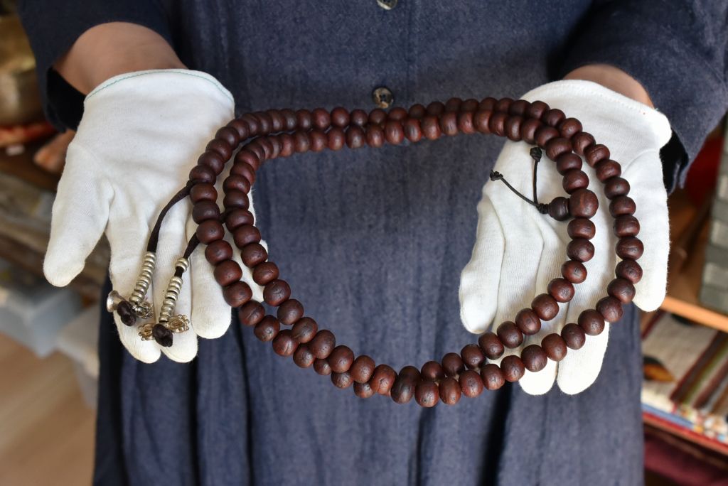 ネパールのチベット仏教寺院でも使われているマラー(お数珠)です。