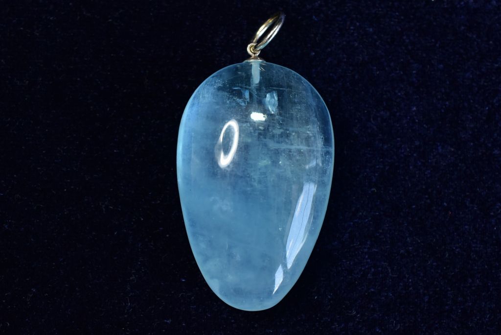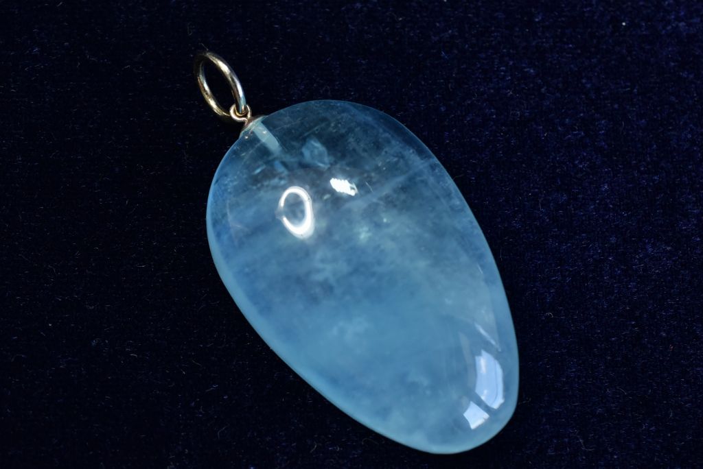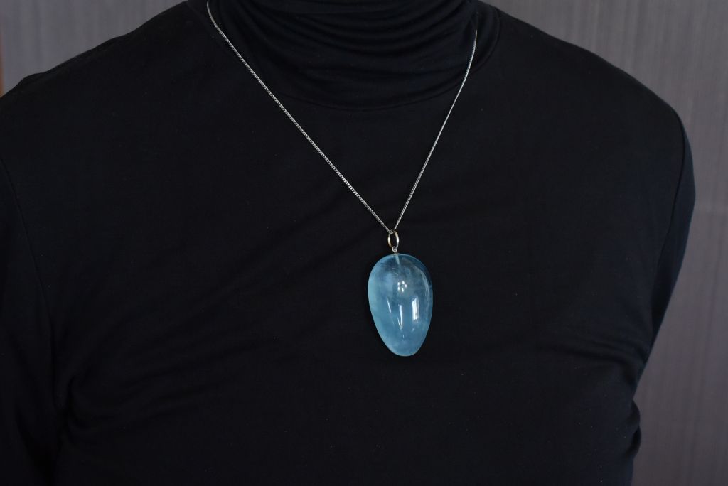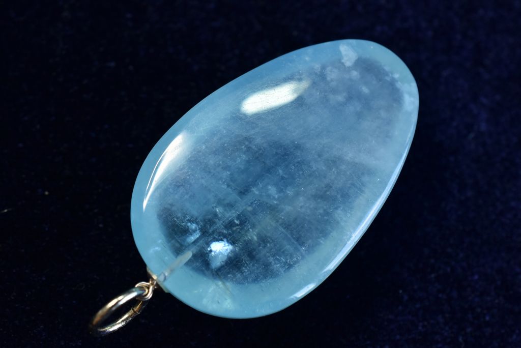装飾を一切施さず、大きなアクアマリンを丸ごとしのまま使用した、とても存在感のあるペンダントです。