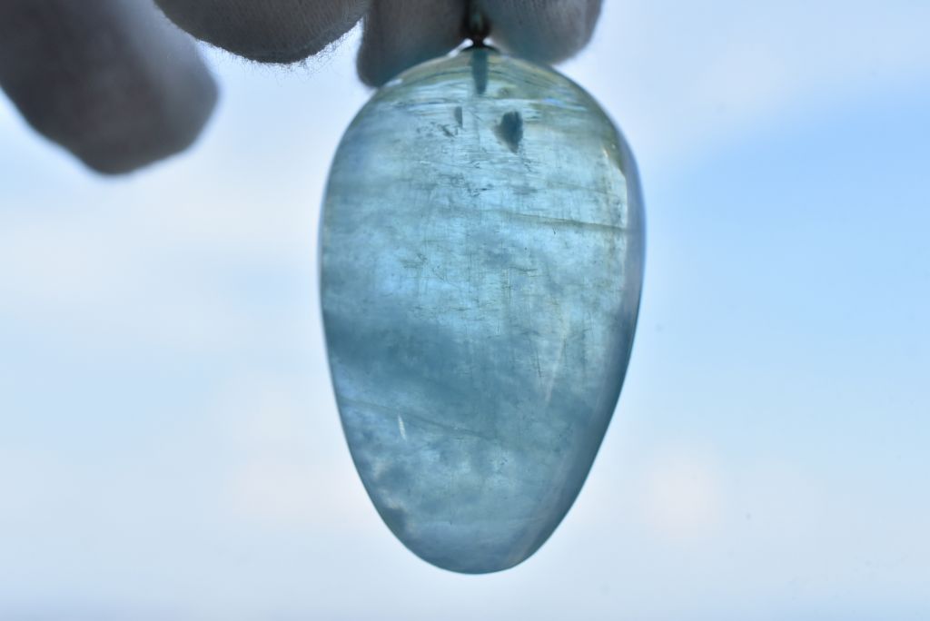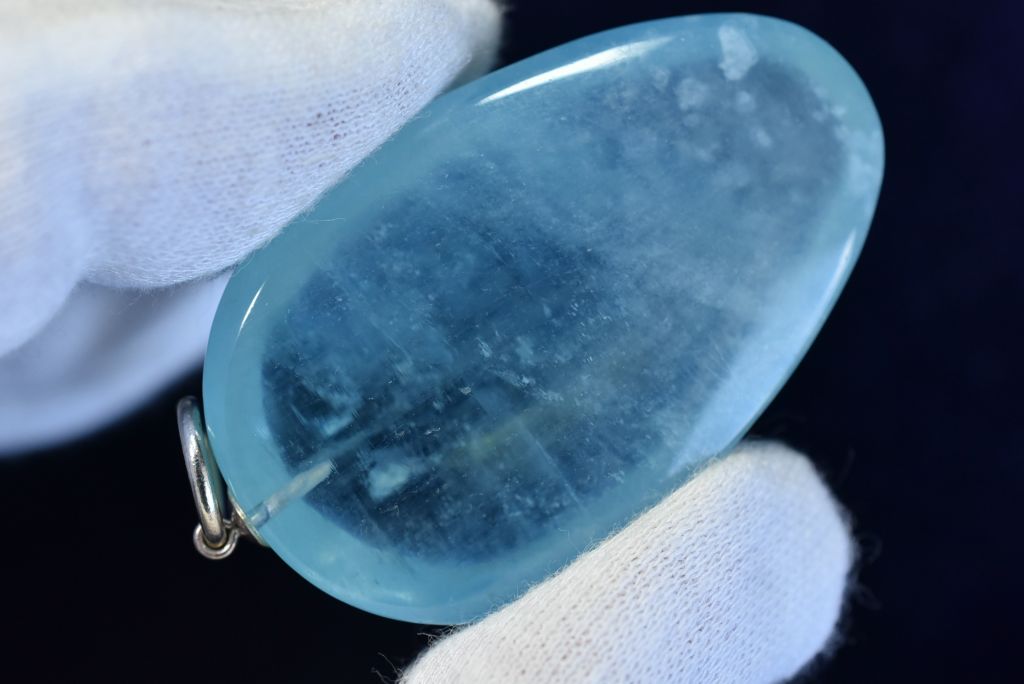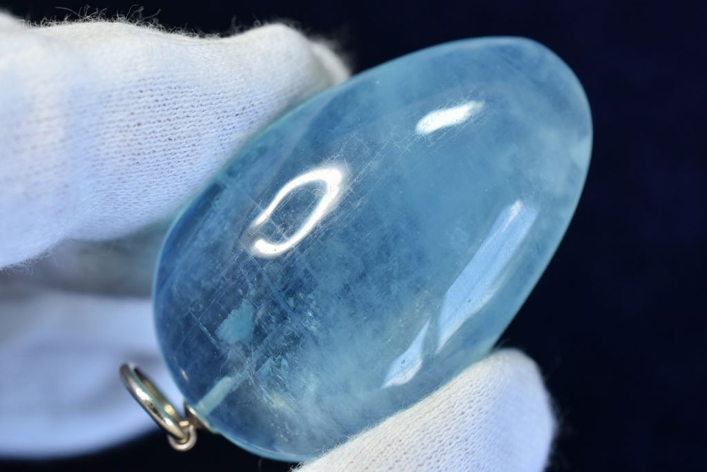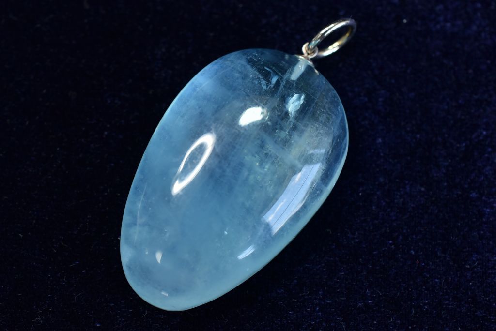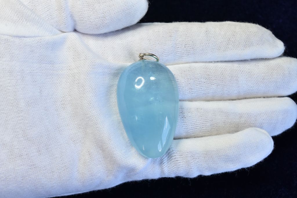装飾を一切施さず、大きなアクアマリンを丸ごとしのまま使用した、とても存在感のあるペンダントです。