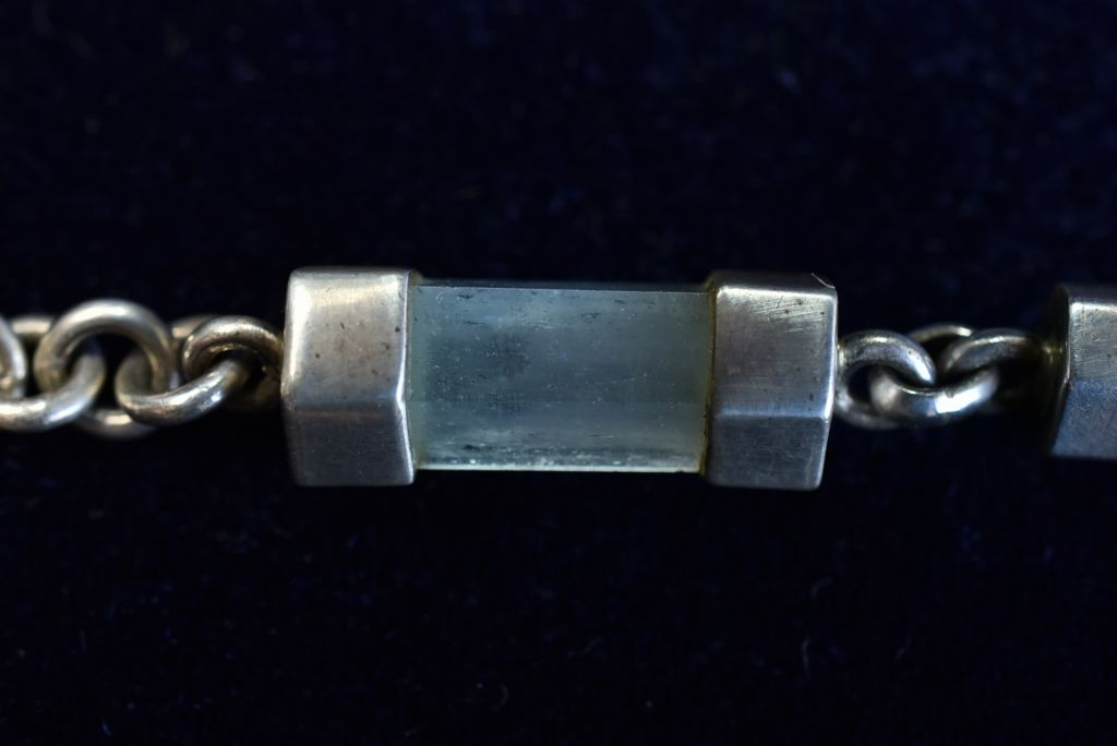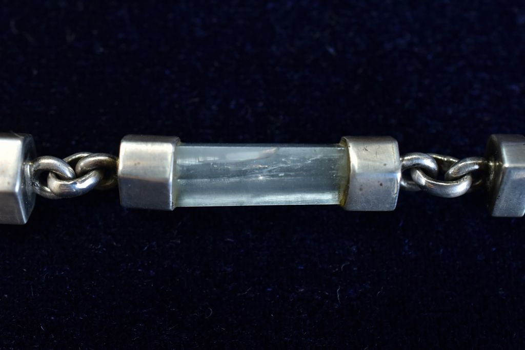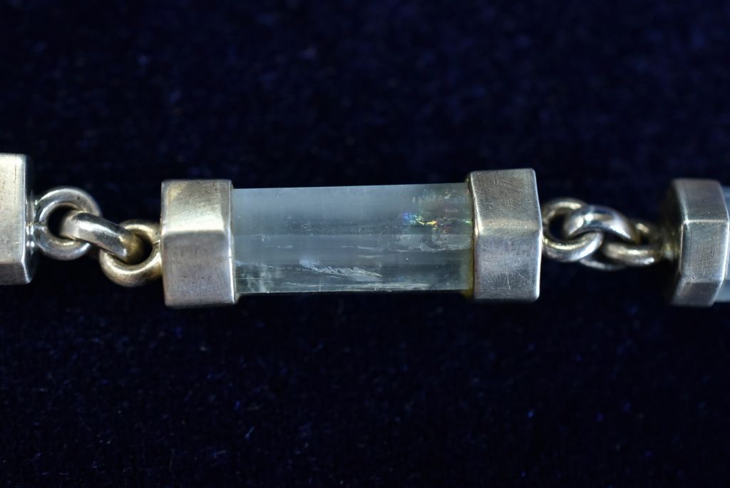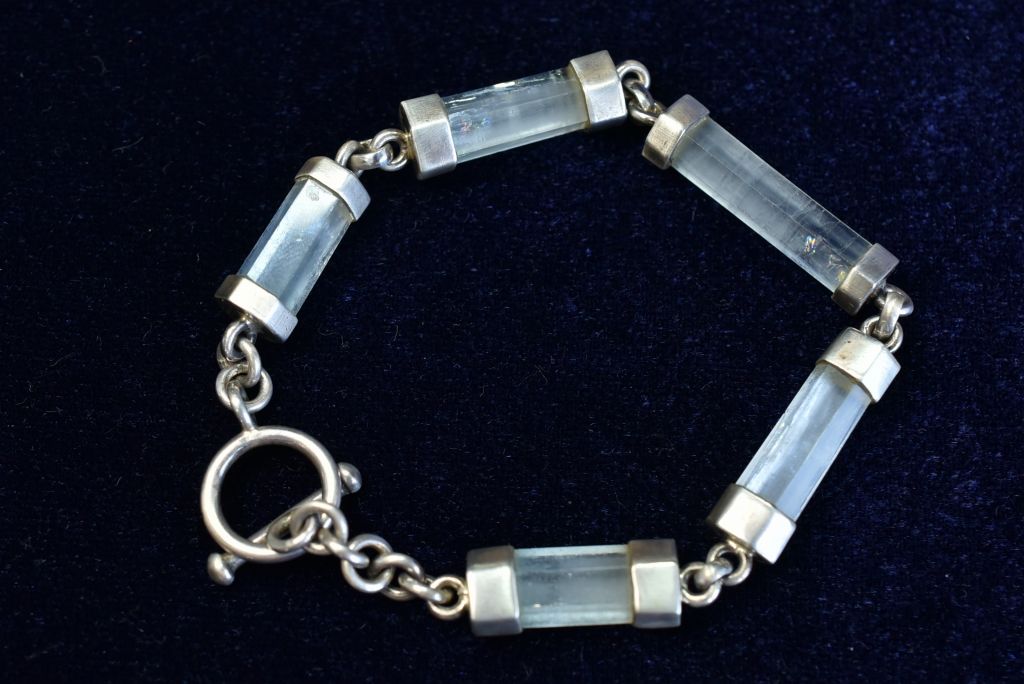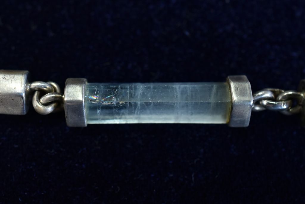 その山の中腹、標高5,000付近で採取された天然のアクアマリンを5個、シルバーのキャップに被せて繋げた珍しいスタイルのブレスレットです。